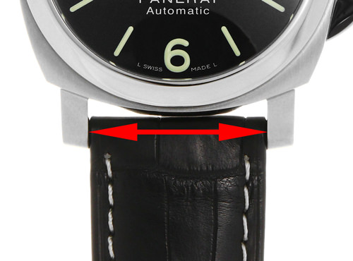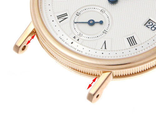 画像のように、ケースとラグ穴の間にしっかりと距離があるものは、ほとんどのベルトで対応可能となります。
